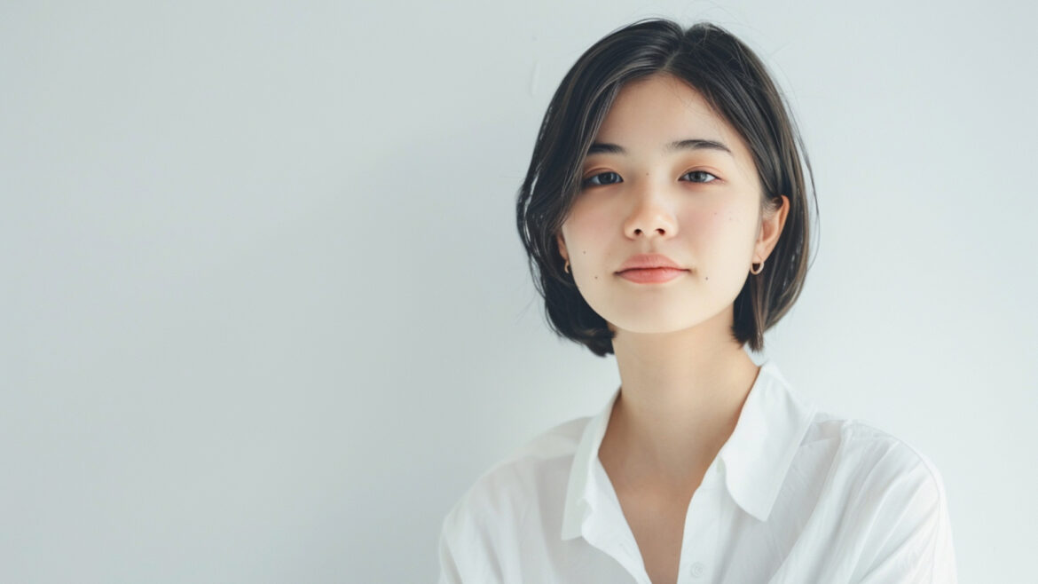 女性 じょせい 女子 じょし 女 おんな 人物 じんぶつ 白背景 しろはいけい 白シャツ しろしゃつ 若い わかい