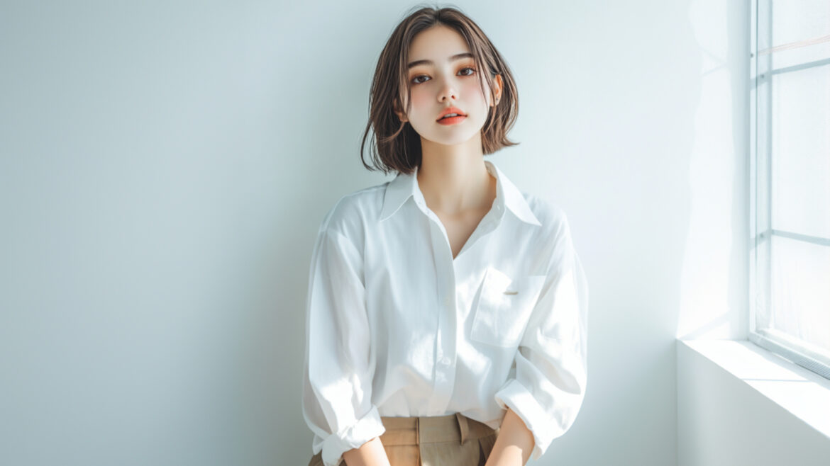 女性 じょせい 女子 じょし 女 おんな 人物 じんぶつ 白背景 しろはいけい 白シャツ しろしゃつ 若い わかい