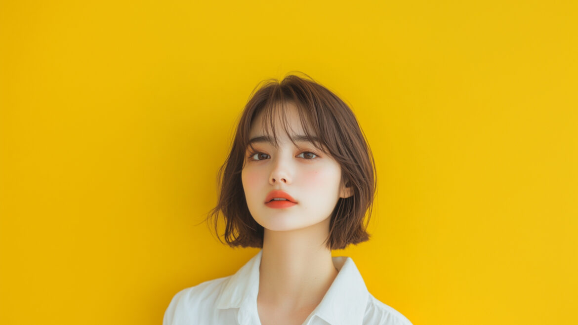 女性 じょせい 女子 じょし 女 おんな 人物 じんぶつ 黄色背景 きいろはいけい 若い わかい