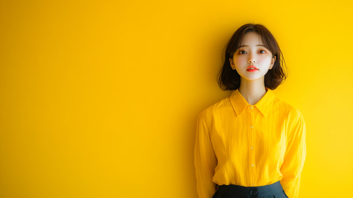 女性 じょせい 女子 じょし 女 おんな 人物 じんぶつ 黄色背景 きいろはいけい 若い わかい