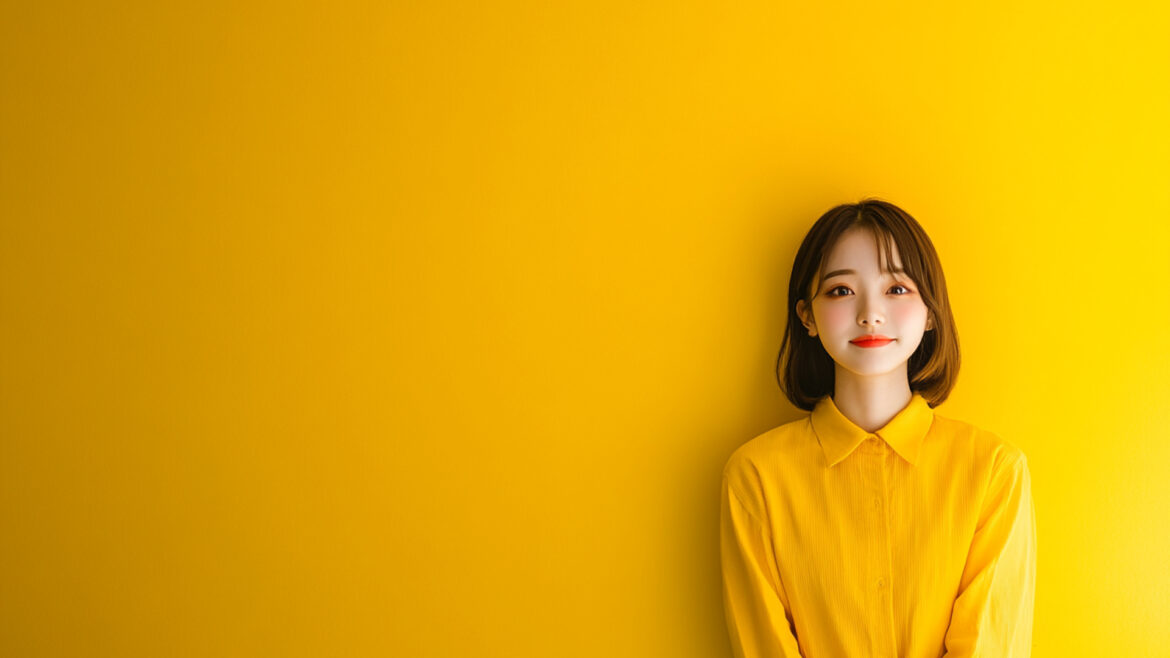 女性 じょせい 女子 じょし 女 おんな 人物 じんぶつ 黄色背景 きいろはいけい 若い わかい