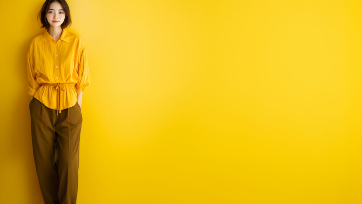 女性 じょせい 女子 じょし 女 おんな 人物 じんぶつ 黄色背景 きいろはいけい 若い わかい
