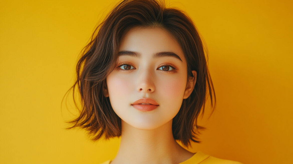 女性 じょせい 女子 じょし 女 おんな 人物 じんぶつ 黄色背景 きいろはいけい 若い わかい