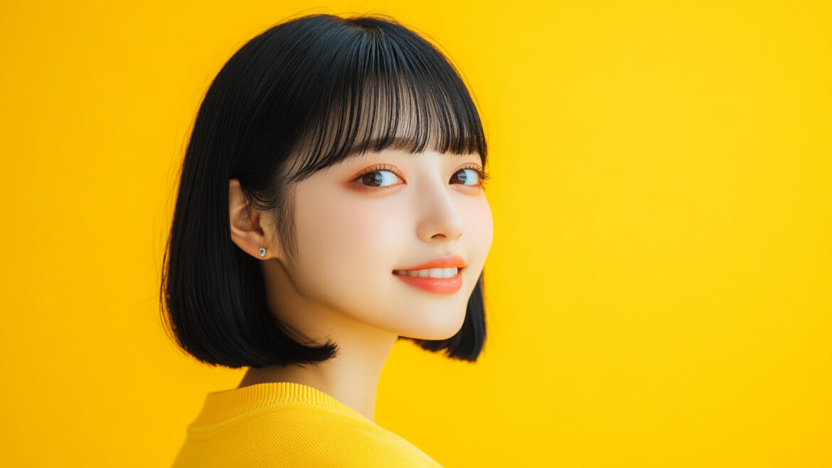 女性 じょせい 女子 じょし 女 おんな 人物 じんぶつ 黄色背景 きいろはいけい 若い わかい