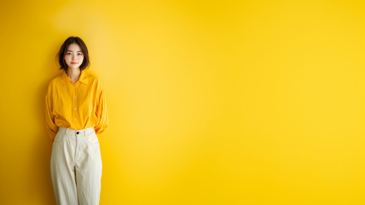 女性 じょせい 女子 じょし 女 おんな 人物 じんぶつ 黄色背景 きいろはいけい 若い わかい