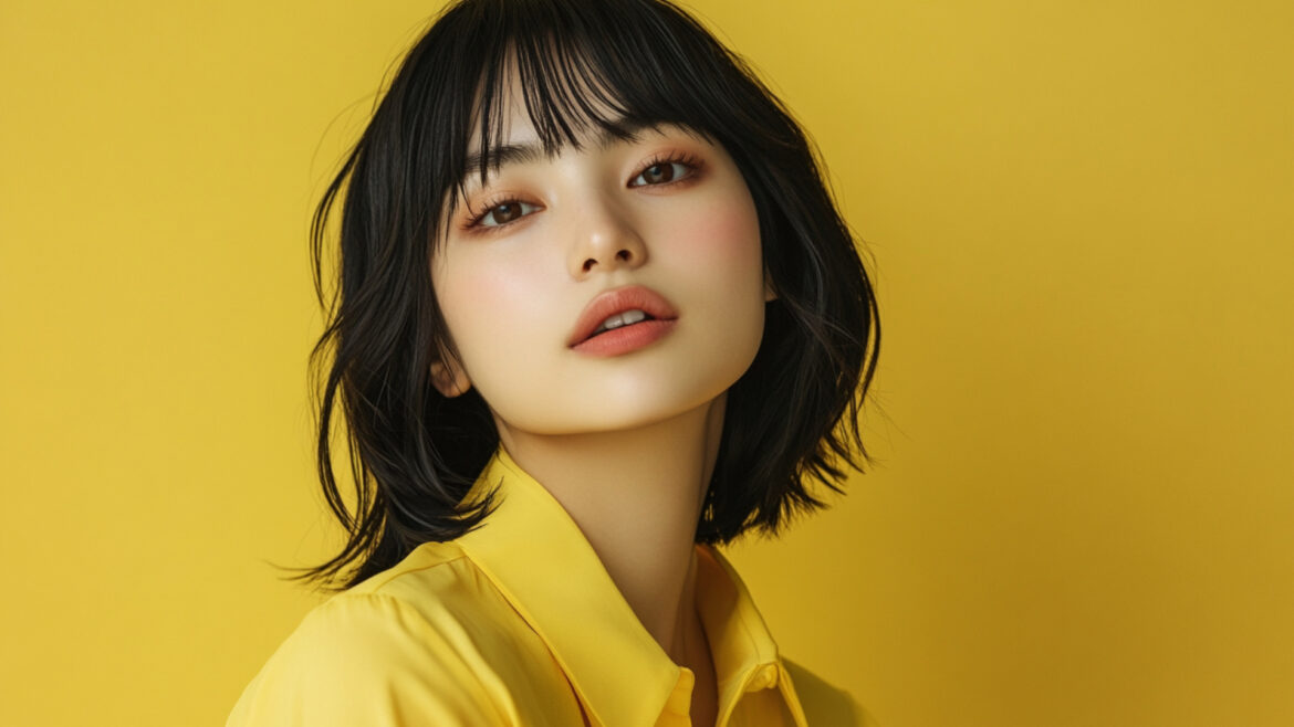 女性 じょせい 女子 じょし 女 おんな 人物 じんぶつ 黄色背景 きいろはいけい 若い わかい