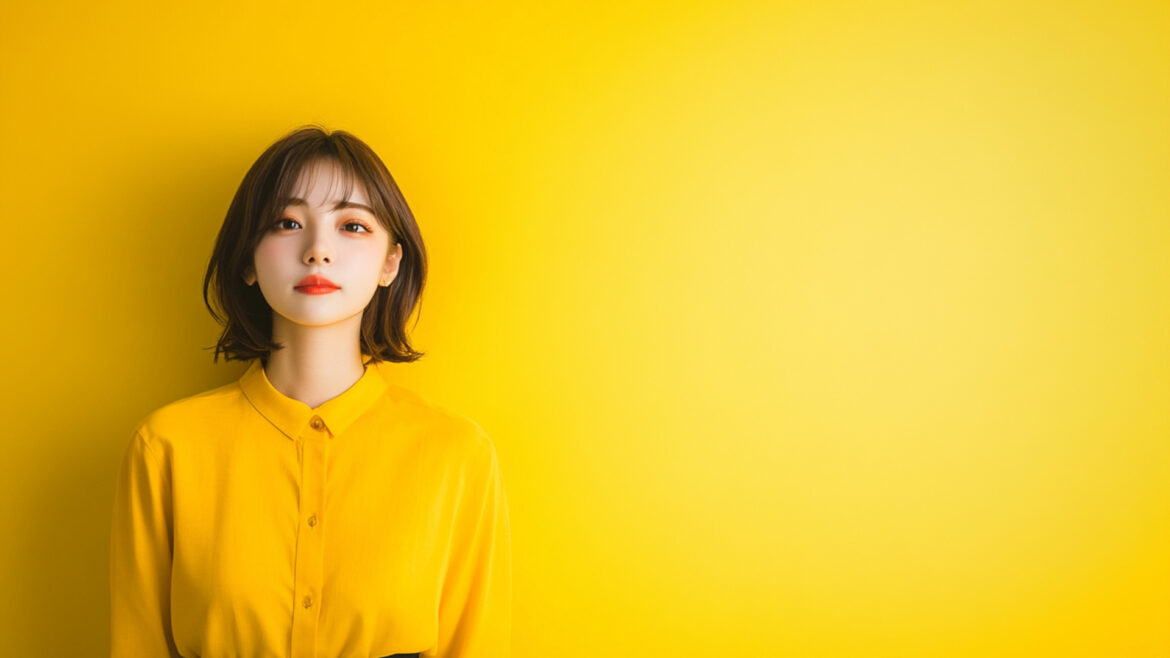 女性 じょせい 女子 じょし 女 おんな 人物 じんぶつ 黄色背景 きいろはいけい 若い わかい