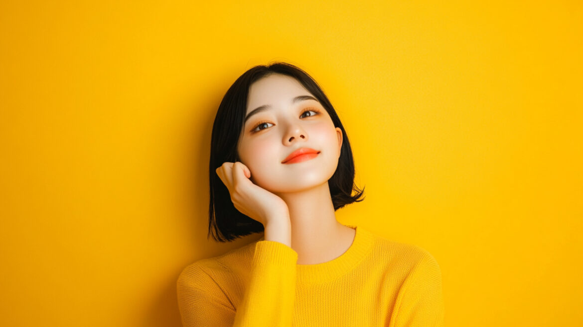 女性 じょせい 女子 じょし 女 おんな 人物 じんぶつ 黄色背景 きいろはいけい 若い わかい