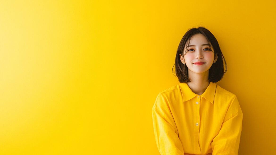 女性 じょせい 女子 じょし 女 おんな 人物 じんぶつ 黄色背景 きいろはいけい 若い わかい
