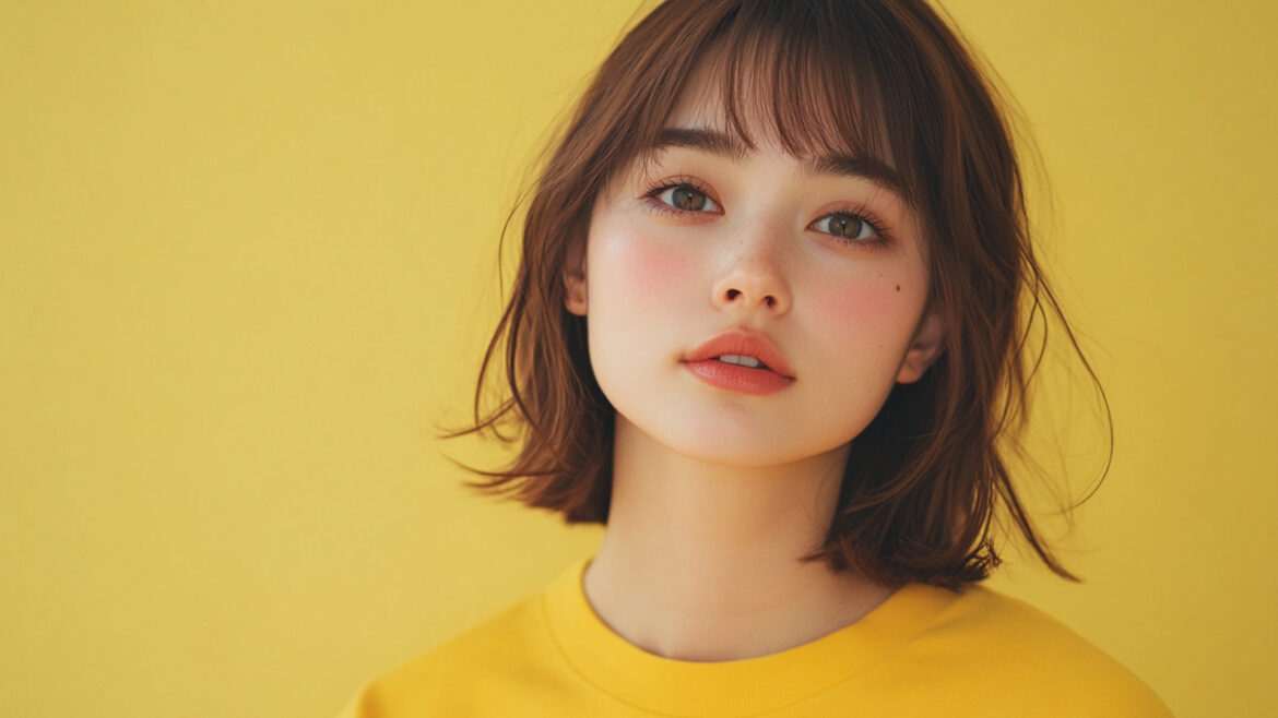 女性 じょせい 女子 じょし 女 おんな 人物 じんぶつ 黄色背景 きいろはいけい 若い わかい