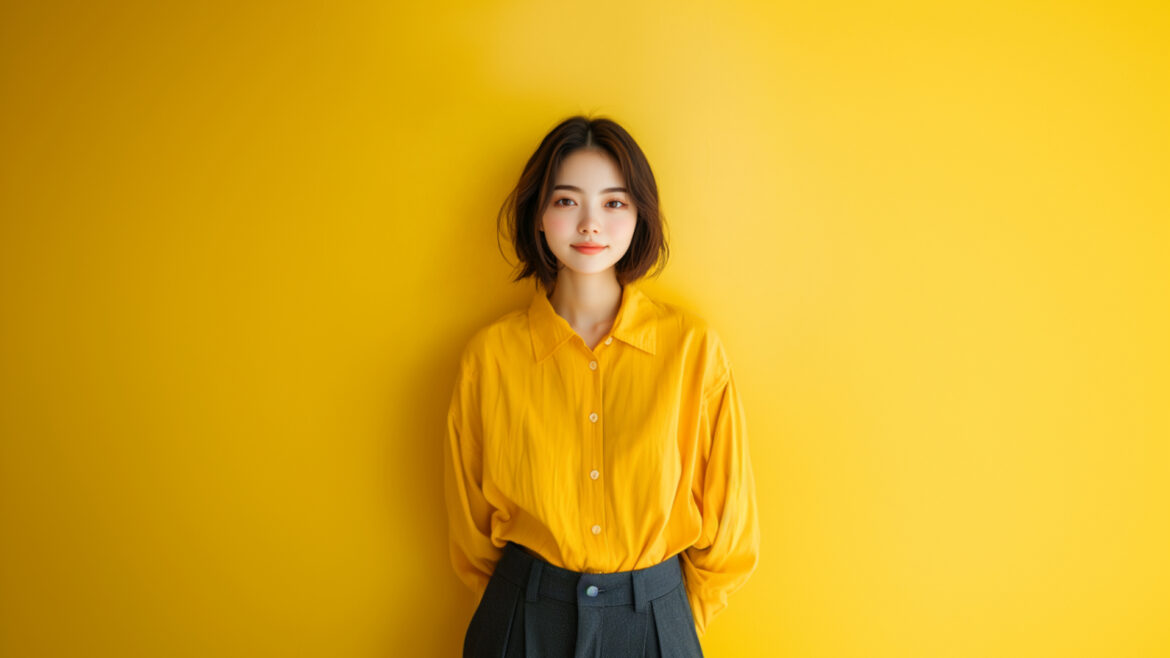 女性 じょせい 女子 じょし 女 おんな 人物 じんぶつ 黄色背景 きいろはいけい 若い わかい