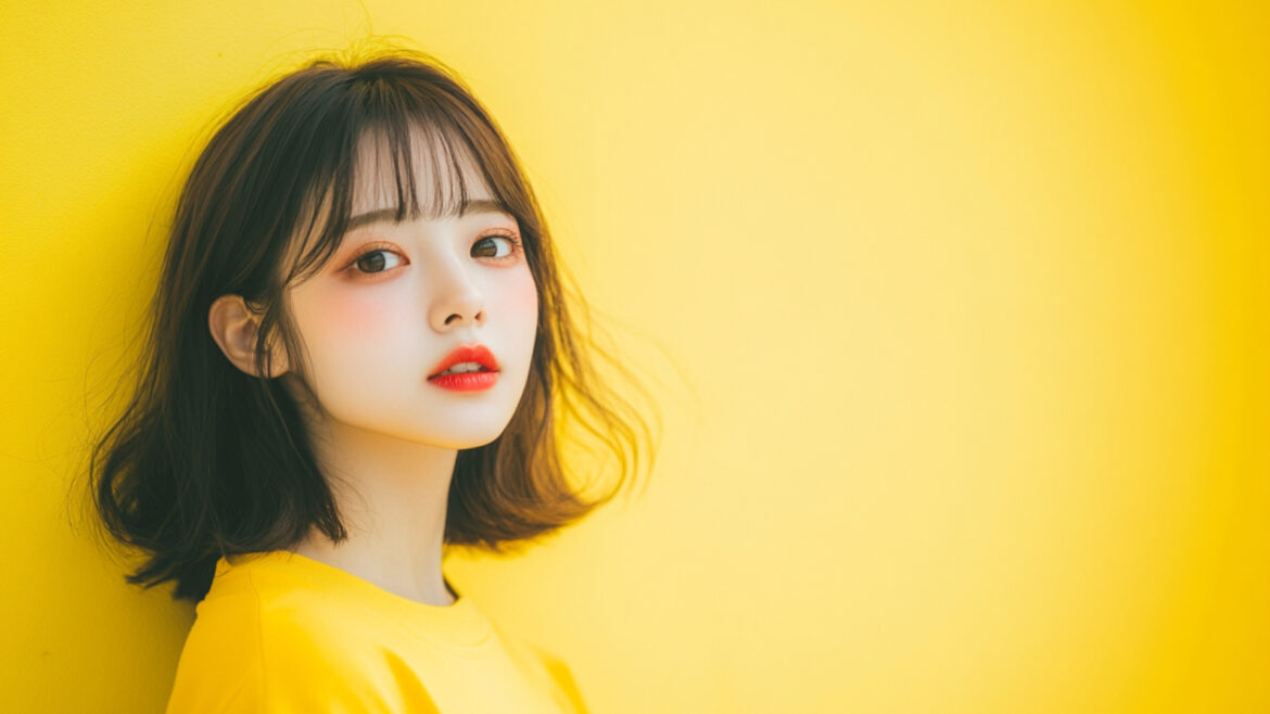 女性 じょせい 女子 じょし 女 おんな 人物 じんぶつ 黄色背景 きいろはいけい 若い わかい