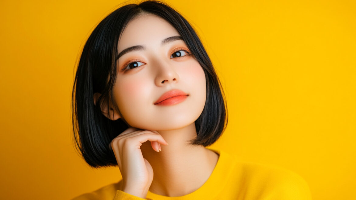 女性 じょせい 女子 じょし 女 おんな 人物 じんぶつ 黄色背景 きいろはいけい 若い わかい