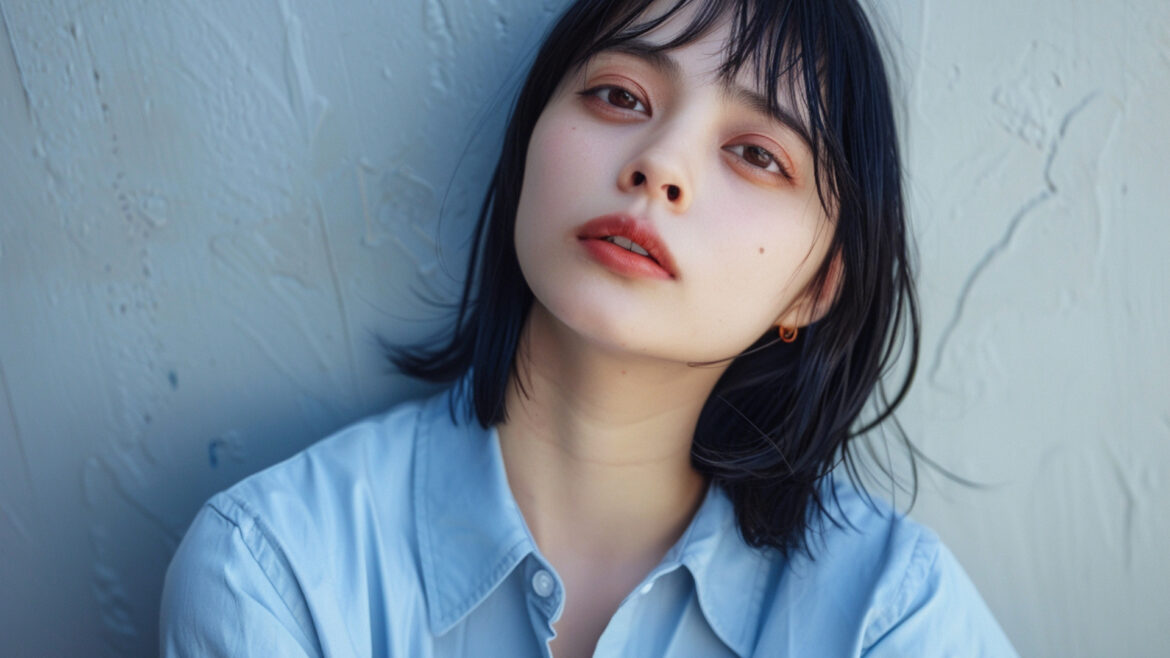 女性 じょせい 女子 じょし 女 おんな 人物 じんぶつ 青背景 あおはいけい 青色背景 あおいろはいけい 若い わかい