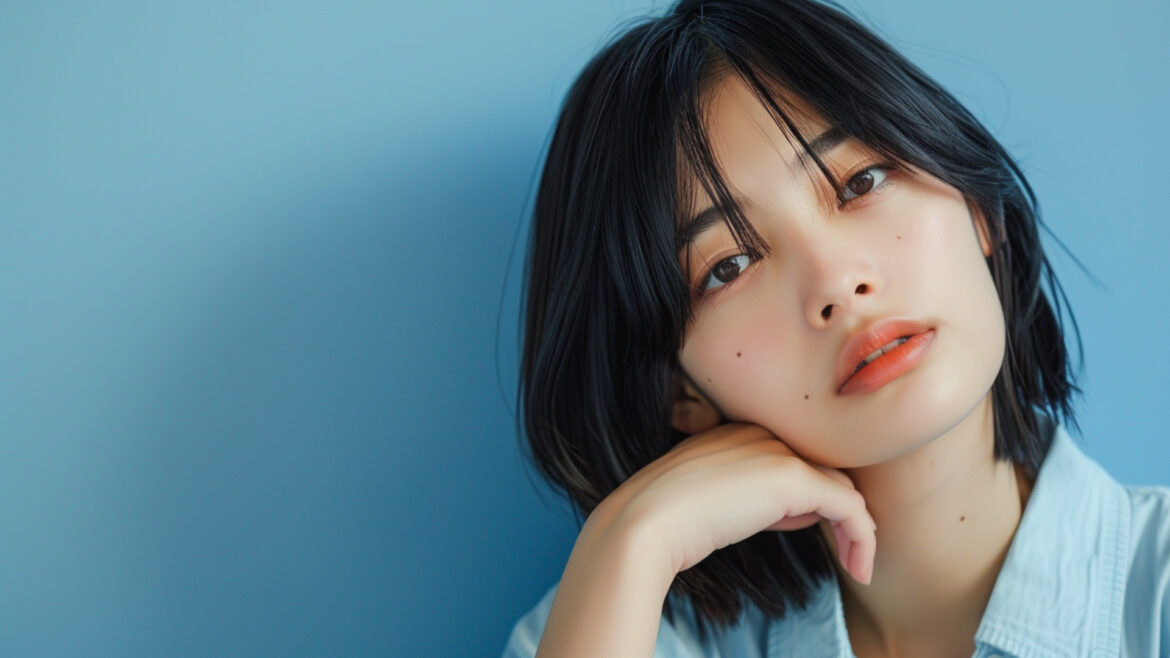 女性 じょせい 女子 じょし 女 おんな 人物 じんぶつ 青背景 あおはいけい 青色背景 あおいろはいけい 若い わかい